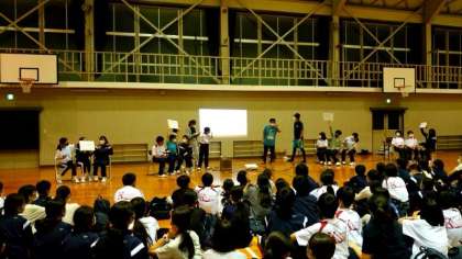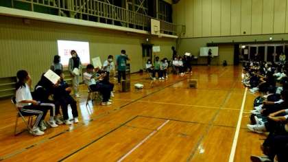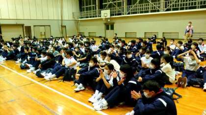次は楽曲当てクイズ。先生がアカペラでメロディーを歌い?ます。この学年の恒例イベントです。