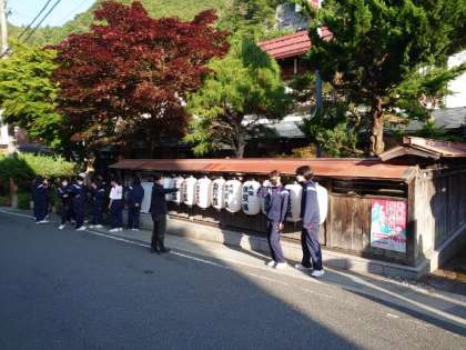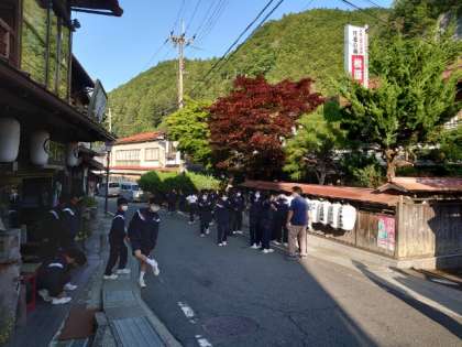 起床後、身支度を整えた皆さんが朝のラジオ体操に出かけます。