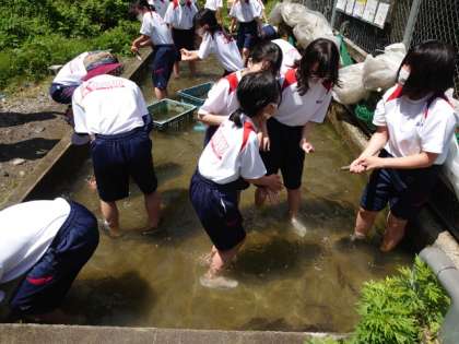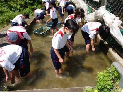 生け簀の水が冷たいのにびっくり。何とか一匹はキャッチしたいですね。
