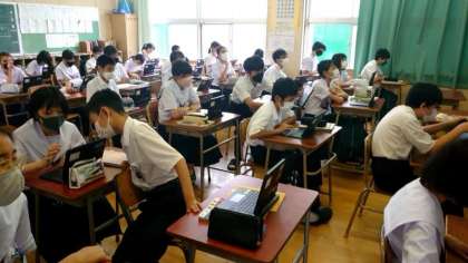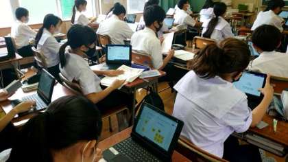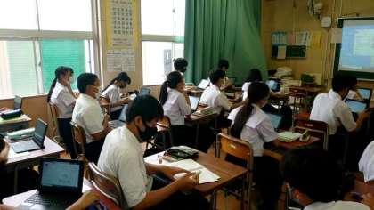 1年生理科の授業で、生物の分類を学習します。ほ乳類や爬虫類・両生類など、生物にはいろんな仲間がありますね。今日は1人ずつタブレット端末を使って、生物をどう分類するかを考えます。お友達と比べてみるとおもしろいですね。
