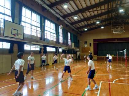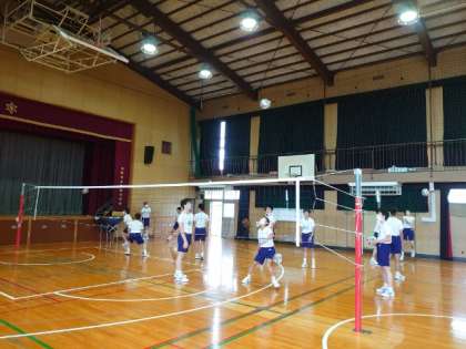 体育館では3年生男子がバレーボールの練習を行っています。パステルを回したり、アタックにチャレンジしたり、技の向上をめざしています。体格も大きくなり、アタックも迫力がありますね。