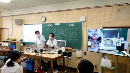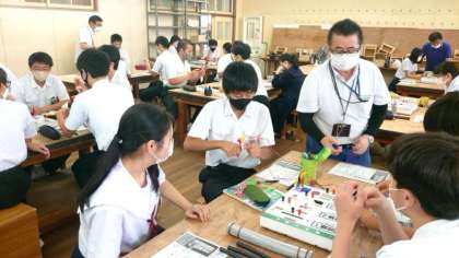 実験に加えて、水力や火力発電の仕組みを教わります。模型を使って、本物と同じ原理で発電のようすを見せていただきました。皆さん興味深く授業を受けていましたね。