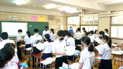 教育実習で本校に来られている先生の研究授業が行われました。今回は1年生英語の研究授業です。皆さん上手に発音していますね。