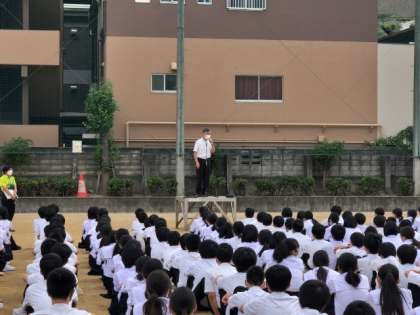 全員無事に避難が完了し、天王寺消防署の方からお話をしていただきました。地震はいつ発生しても不思議ではありません。日頃の備えが大切ですね。
