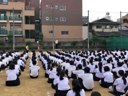 消防署の方曰く、運動場への避難が完了するのに少し時間がかかりすぎとのこと。次回の訓練では時間を意識した行動を心がけましょう。