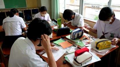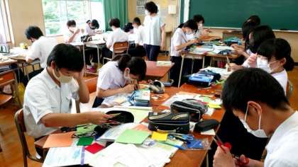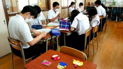 3年生家庭科でフェルト生地を使って大きな名札を制作します。幼稚園児が付けるようなデザインを考えて、カラフルなフェルト生地を縫い進めます。可愛い作品になりそうですね。