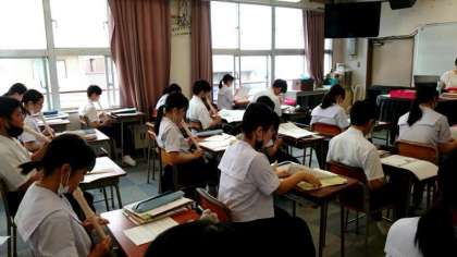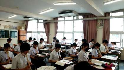2年生音楽の授業でリコーダーの実技テストを行います。課題曲は「さんぽ道」。器楽の教科書によく載っている曲だそうです。運指や姿勢、タンギングなどが評価ポイント。緊張しますが頑張ってください!