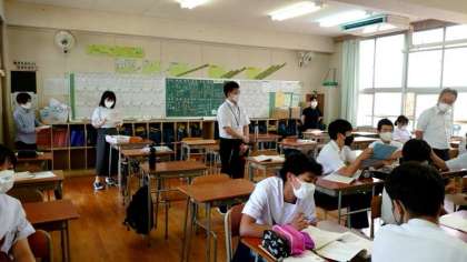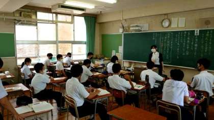 2年生国語科で研究授業が行われています。小説を鑑賞し互いに意見を交わします。同じ作品を読んでもいろんな捉え方があるようです。