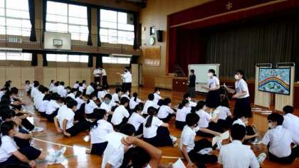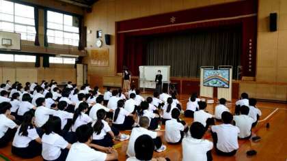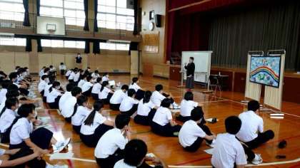 3年生の皆さんが体育館に集まってきました。これから講師の先生から性に関するお話を伺います。各クラスの保健委員さんからプリントも配られました。質問や感想を書き留めてくださいね。
