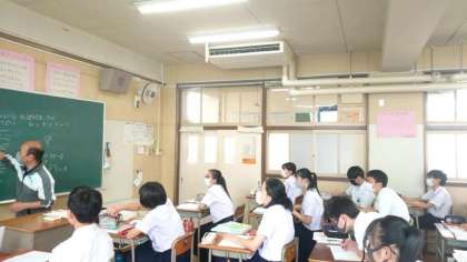 3年生数学の授業で2次方程式の問題を解いています。先日教わった「解の公式」を用いて、解答を導きだします。高校でも出てくるので、今のうちにマスターしましょう。