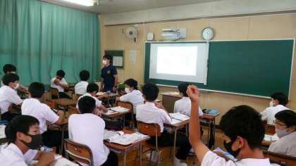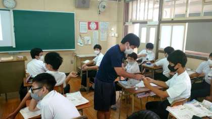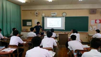 2年生男子の皆さんが保健の授業を受けています。今日の学習は未成年の飲酒と健康について。先生から希望者にエタノールをしみこませた絆創膏が渡されました。これで、アルコールに対する適応性がわかるそうです。自身の体質を知る目安になるとのことですが、適応性があっても成人するまではダメですよ。