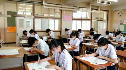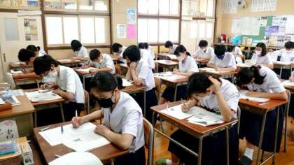 1時間目は社会のテスト。3年生の教室では皆さんが静かにペンを滑らせています。第2次世界大戦中の歴史が出題されている模様。まだまだ時間があるので、じっくりと解きましょう。