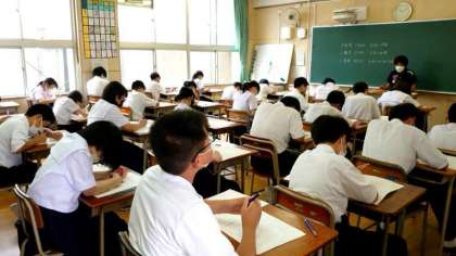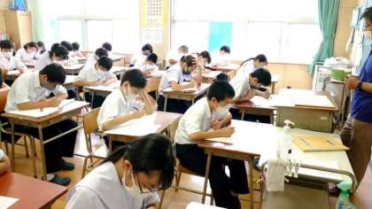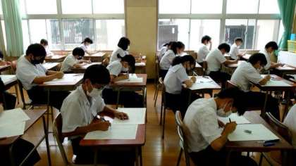 2時間目、数学のテストが始まりました。1年生の教室では皆さんが計算問題を解き進めています。授業で教わったのと類似した問題が出ているようです。よく思い出してくださいね。
