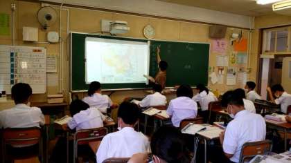 1年生社会科でアジアの国々の特徴を学習しています。今日は中国の産業について教わります。地図帳の資料を参考に、1990年代以降、経済成長が著しい中国の特徴をおさえましょう。