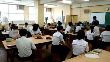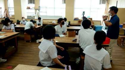 2年生技術科で金属加工の実習が始まります。1人ずつ金属板が配られ、フォトスタンドかメモパッドを製作します。まずは好みのデザインを金属板に描く作業から。ステキな作品になりますように!