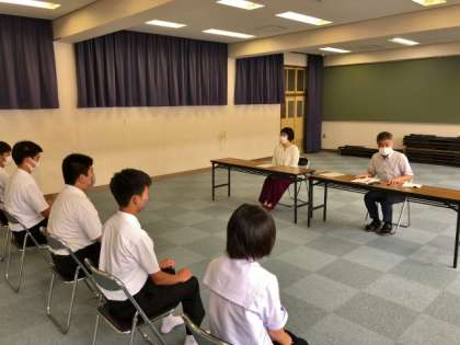 3年生の面接練習2日目。今日は2組・3組の皆さんが面接を受けました。夏休みにむけた目標も話してくれました。受験生としての意識や自覚を感じられるやりとりでしたね。