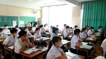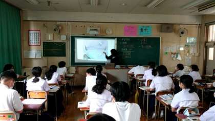 1年生理科の授業で光の屈折を学習します。光が水中に入りこむ時、水面で光の進む方向が変わる(屈折する)ので、水中の物が浮かんでいるように見えるとのこと。ことばだけでは理解しにくいですが、画像を用いて教わるとわかりやすいですね。
