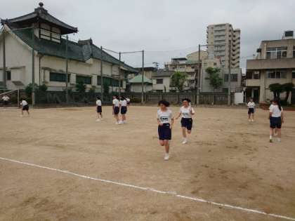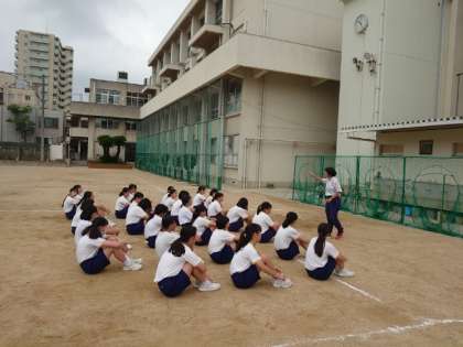 運動場で3年生女子の皆さんがバトンパスを練習しています。これまでも練習を積み重ねてきたので、皆さん上手にパスできていますね。体育大会本番でも成功しますように!