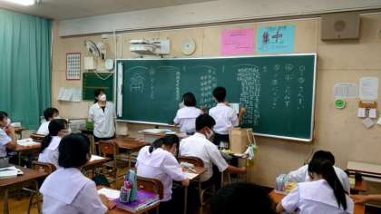 1年生国語科で漢字の部首を学習します。虫偏(むしへん)やけものへんなど、いろいろな部首がありますね。皆さんが各部首の漢字を次々に黒板に書き出しています。たくさんの漢字があってビックリします。
