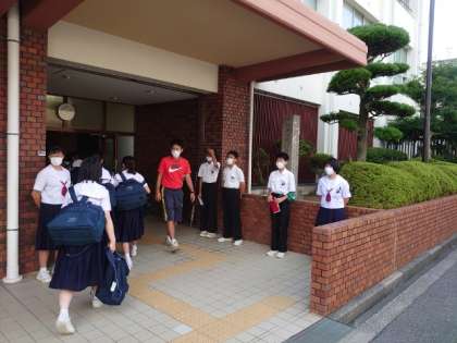 セミの鳴き声が玄関に響いています。今朝も皆さん元気に登校してきました。今日の午後も2年生3、4組が校長面接に臨みます。予定しておいてくださいね。
