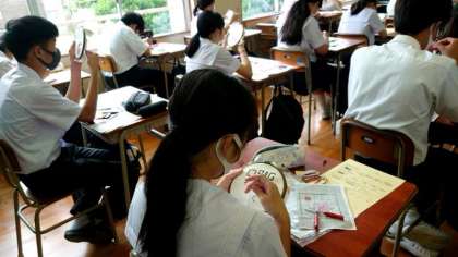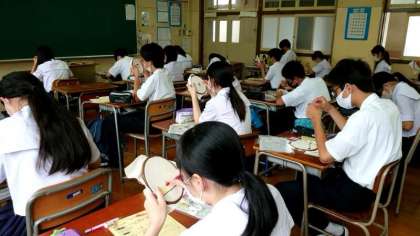 2年生家庭科で制作しているクロスステッチ。色とりどりの刺繍糸を使って、皆さんが考えたデザインの輪郭が見えてきました。お花やアニメのキャラ、部活動の楽器やグッズなど、いろいろな絵柄がありますね。