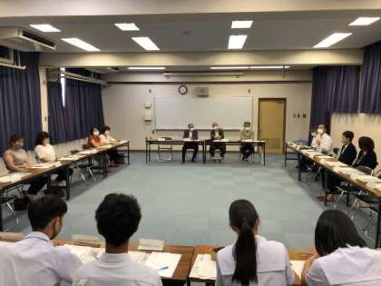 先週末、生徒会の皆さんがPTA・地域の方々と学校生活について話し合いを行いました。1学期の取り組みの報告やスマホの使い方の意見交換など、いろいろなやりとりができましたね。