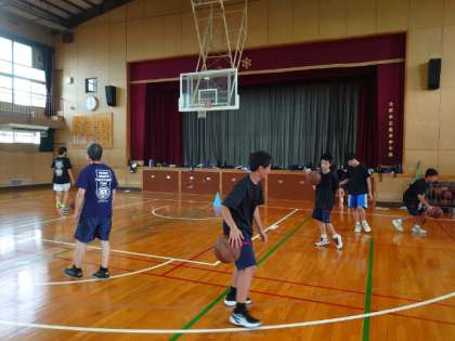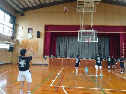 男子バスケットボール部の皆さんが気持ち良い汗を流しています。ゴールに狙いを定めて、次々にシュートを打ちます。練習を積み重ね、精度を高めてくださいね。