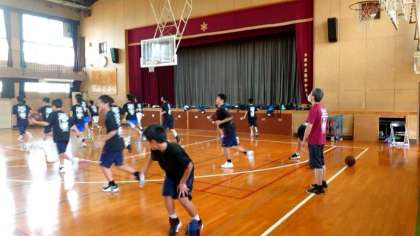 体育館で男子バスケットボール部の皆さんが活動中。3年生の先輩方が引退し、1、2年生中心に練習に励んでいます。この時期は他校と合同で練習するクラブも多いようです。気持ち新たに頑張ってください!