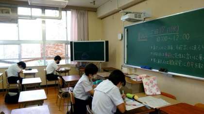 明日18日(木)は全校登校日。8時55分までに登校してください。夏休みの宿題(一部)提出になっている教科があるので、忘れないように気をつけましょう。学校では教室を開放して自学自習に取り組む「放課後スタディ」を行っています。宿題を仕上げている人もいる模様。期日に間に合うよう、頑張ってくださいね。
