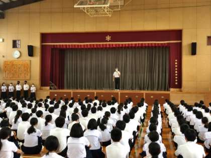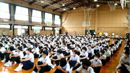 全員が集って集会を行います。新学期まであと1週間。実り多い楽しい夏休みになりますよう、事故や健康に留意してくださいね。