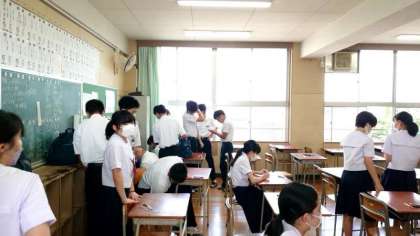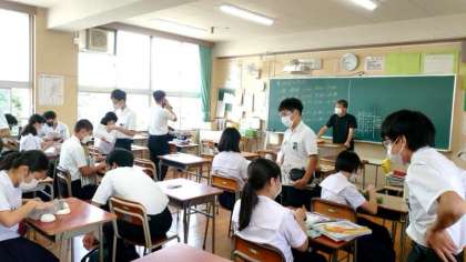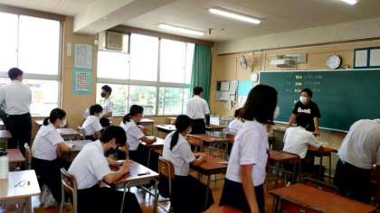 テスト開始前の教室では3年生の皆さんが最後の追い込み中。監督の先生が来られたので、急いで荷物を収納します。夏休み明けすぐの実力テストは高津中の恒例行事。皆さん頑張ってください!