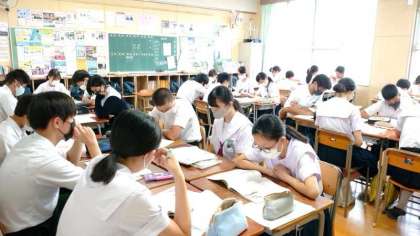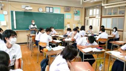 3年生各教室で道徳の授業が行われています。友達の変顔の写真をネットに上げたことで起こる問題を考えます。日常生活にスマホ利用が広がる中、責任ある振る舞いが必要ですね。