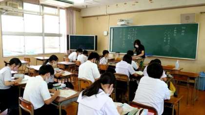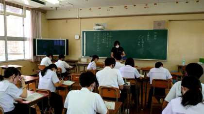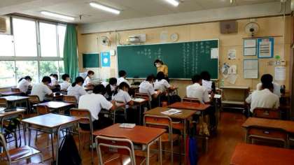 2年生国語科で少人数授業が行われています。今日教わるのは文法の「助詞」。格助詞や接続助詞など4つに分類されるそうです。格助詞の覚え方(鬼が戸より出、空の部屋)や使い方をマスターしましょう。