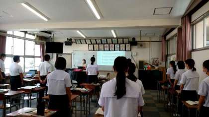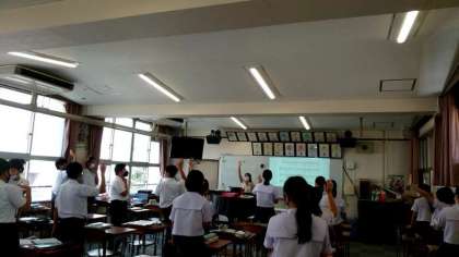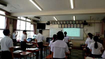 2年生音楽の授業で「高津中生徒会歌」を練習しています。体育大会の閉会式で伝統的に歌われる曲。「北に見上げる大阪城〜」は歌詞の2番目。生徒手帳に載っているので確かめてみましょう。