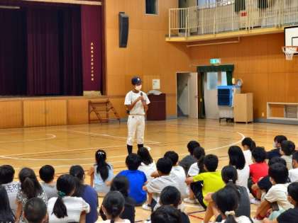 小学生の皆さんが中学校の部活動を体験する「ベアーズ」の説明会を行いました。コロナ禍のため活動が止まっていましたが、小学6年生限定で希望者を募ります。今日は真田山小、明日は味原小に伺います。