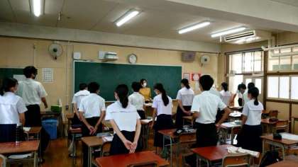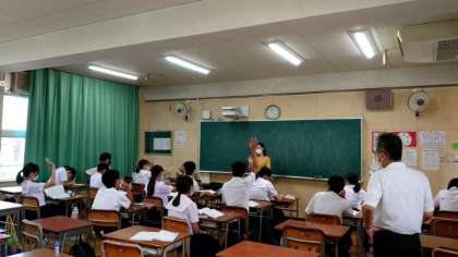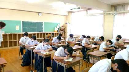2年生国語科でクラスを2分割して授業を行っています。今日は「助動詞のはたらき」を教わります。少人数なので個別の質問もやりやすそう。皆さんわからない点はどしどし聞きましょう。