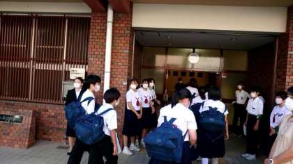 台風の接近が嘘のように澄んだ青空が広がる朝。昨日に続き、本日も体育大会の学年練習を行います。各学年演技の練習が中心になる模様。完成にむけて気持ちを合わせましょう。