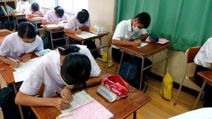 お気に入りの本を紹介し、読みたくなった本に一票を投じるビブリオバトル。1年生の教室でクラス代表を選出するバトルが繰り広げられています。3分間の紹介が終われば、投票用紙に感想を書き留めます。どの本が選ばれるでしょう?