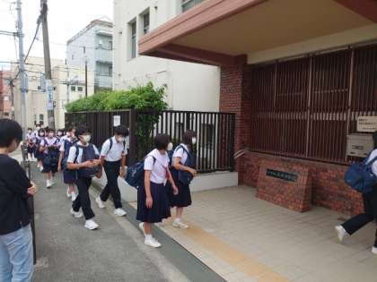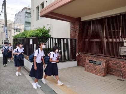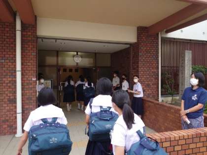 爽やかな秋空が広がる朝。皆さん元気に登校してきました。明日は体育大会。今日の授業は午前中まで。給食後、係・役割のある人が会場準備を行います。みんなで協力して取り組んでくださいね。