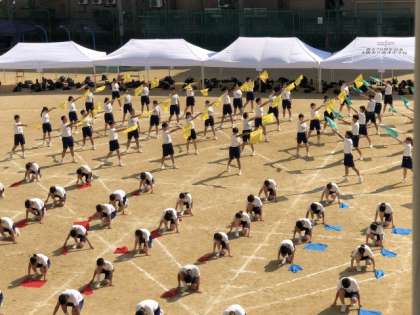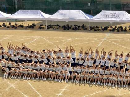 運動場いっぱいに広がって、さまざまなパフォーマンスを披露します。