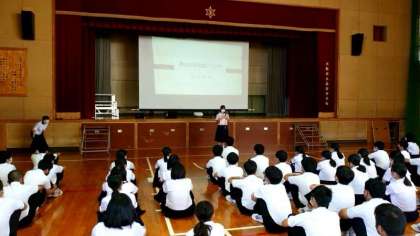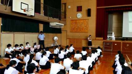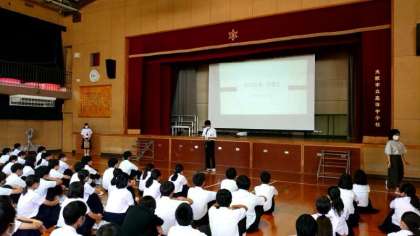 体育館で2年生学習発表会が行われています。お仕事(職業)や戦時中のようす(平和学習)など、ご家族に教えていただいたお話を発表します。実際に体験された数々のお話は私たちの心に響きます。