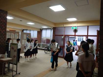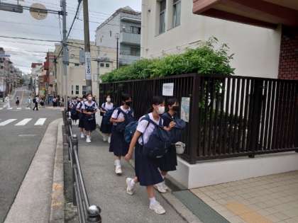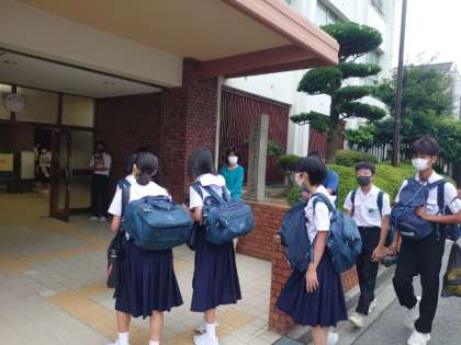夜半の雨は止んだものの、鉛色の雲が空を覆う朝。今朝も生徒会役員候補の皆さんが元気に活動しています。今日の放課後は小学生の部活動体験「ベアーズ」があります。運動場の状態も大丈夫そう。小6の皆さん、待っていますね。