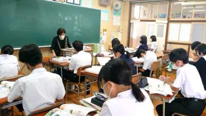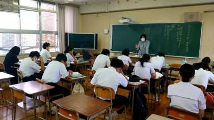 3年生国語科で松尾芭蕉の「おくのほそ道」を鑑賞中。「月日は百代の過客にして、行きかふ年もまた旅人なり」の冒頭は有名です。クラスを分割した少人数での学習。雰囲気がゆったりしていて俳句を味わうのにぴったりです。
