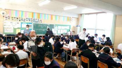 1年生数学の授業で班毎にブラックボックスを作ります。ボックスの左から右へと数字が通過すると数値が変わります。みんなで数値が変化するルール(計算式)を考えます。ゲーム感覚で関数の仕組みを学びます。皆さんワイワイ楽しく取り組めましたね。
