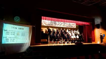 来週火曜日開催の1年生合唱コンクール。現在、体育館でリハーサルが行われています。本番と同じ内容で皆さんがステージに上がり、ステキな歌声を響かせています。