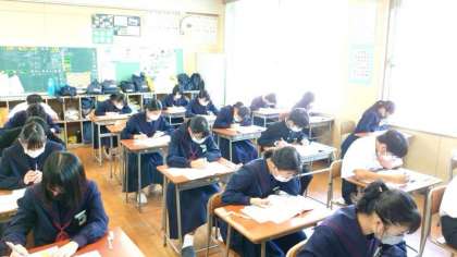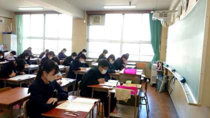 英語4技能テストGTECが始まりました。まずは「読む力」を測ります。皆さん放送の指示にそって問題を解き進めます。一定の時間内に問題を解き終えないといけない模様。あわてず、あせらず頑張りましょう。