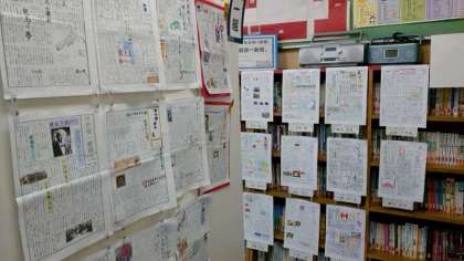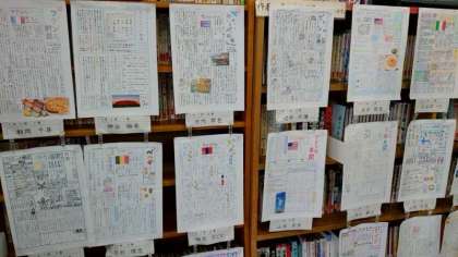 社会科は1年生が世界の国調べ、2年生が歴史新聞を作成しました。皆さん上手にまとめていますね。