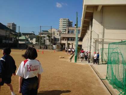 真田山小2年生の皆さんが高津中にやってきました。校区巡りの一環で中学校を訪問してくれました。運動場では中1女子がサッカーの授業中。ちびっこのサプライズ訪問にみんな大喜び!小学校の皆さん、いつでも遊びに来てくださいね。