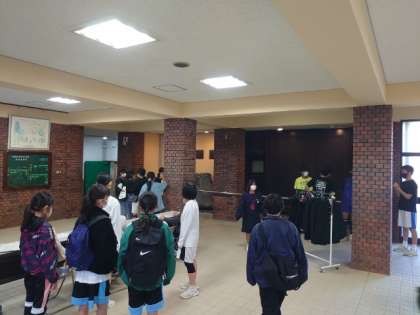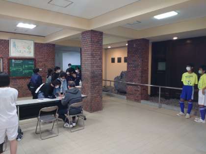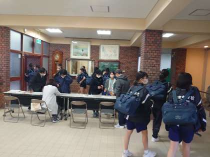 小学生が中学校の部活動を体験するベアーズの活動が始まります。玄関に小6生が次々にやってきました。