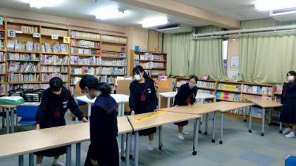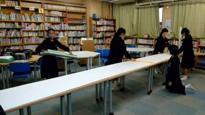 来月3日(土)に開催される天王寺区市立中学校合同文化祭。書道部の皆さんが文化祭準備を始めました。顧問の先生と展示作品のアイデアを相談したり、大きな半紙を切り分けたり、それぞれ作業に取り掛かります。当日は書道パフォーマンスも行うそうです。皆さんの発表が楽しみです。
